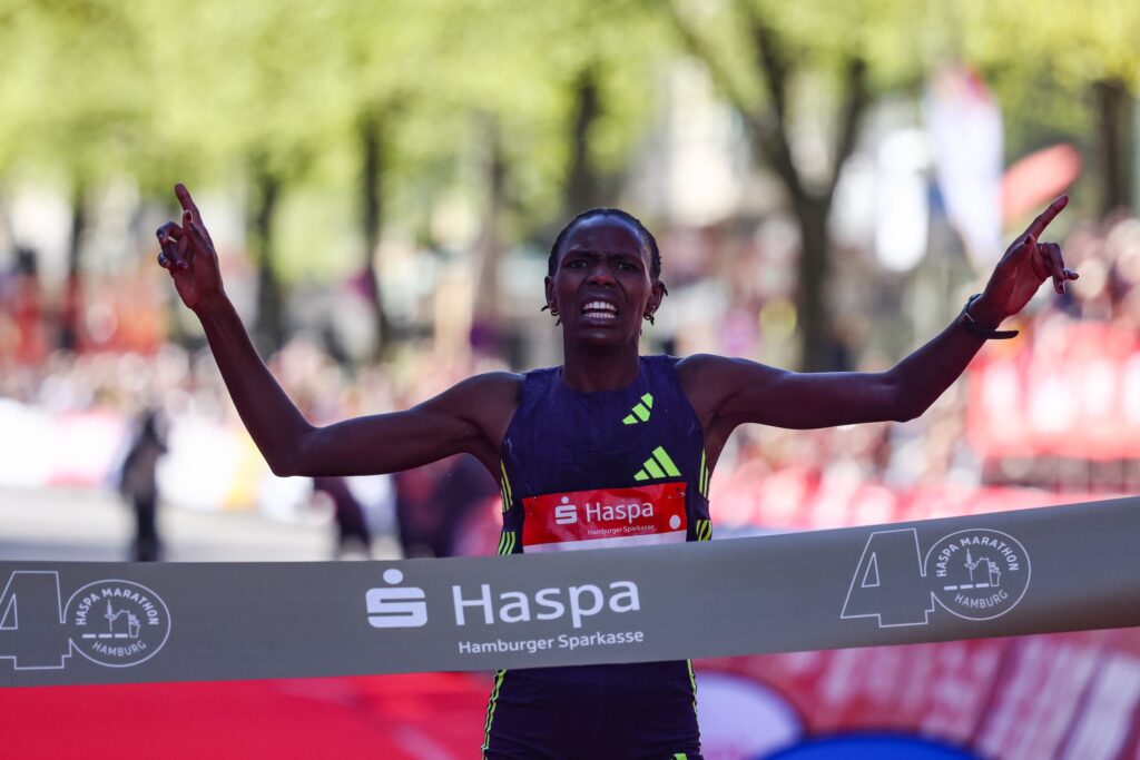 Brillian Kipkoech crowned the 40th Haspa Marathon Hamburg with an unexpected course record of 2:17:05, smashing her personal best by almost seven minutes. Fellow Kenyan Rebecca Tanui was second with 2:18:25, and Ethiopia’s Kasanesh Ayenew took third in 2:19:39. Othmane El Goumri became the first Moroccan winner in the history of the event when he broke his own national record. In perfect weather conditions, he clocked 2:04:24 while Germany’s runner-up Samuel Fitwi achieved a rare national podium position in the men’s race. He improved his PB to 2:04:45. It was back in 1999 when a German male runner last achieved a top-three position in Hamburg: Carsten Eich was second 27 years ago. Kenya’s Kennedy Kimutai finished third with 2:04:56.