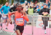 Right from the start the fastest runners set out to make a concerted attack on the course record of 2:19:10. Although no runner had a personal best faster than 2:21:17, the pace was consistently aimed at breaking the record. “I wanted originally to run at my own pace alone at the head of the field. But the organizers planned that we ran together as a group until 25kms. The tactic proved very good,” said Feysa.